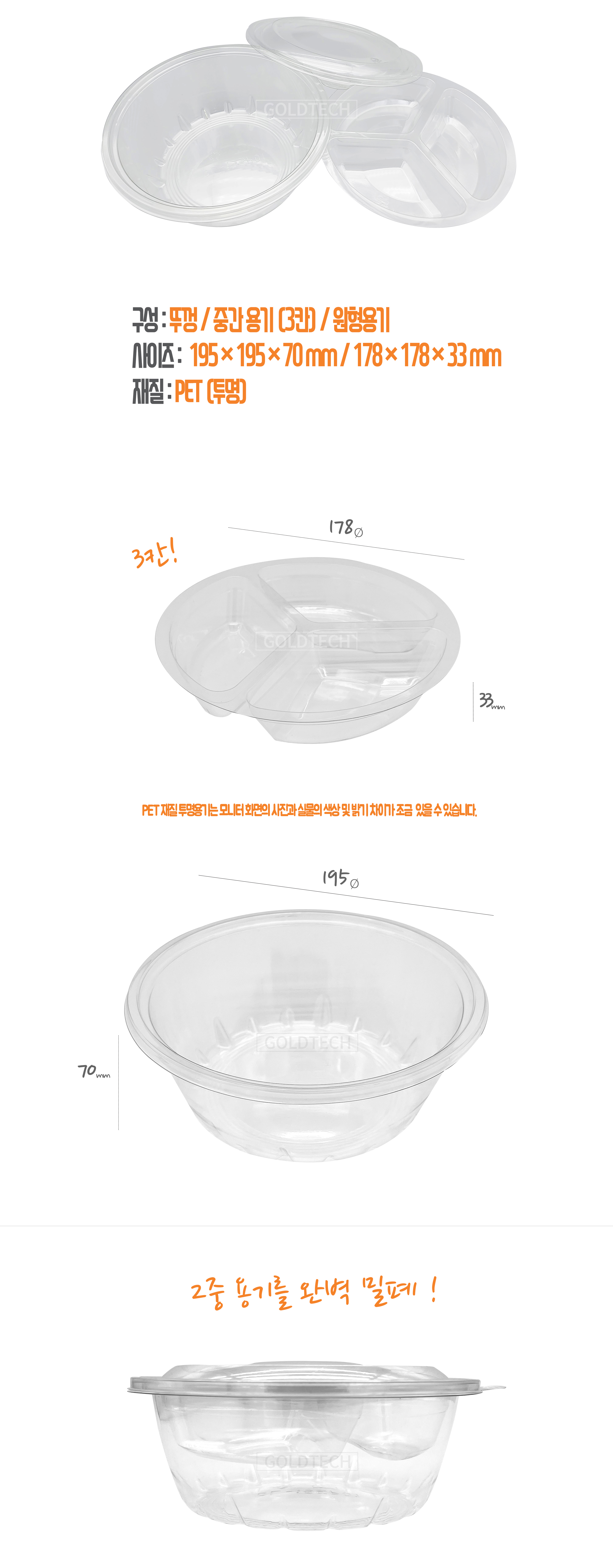 제품소개 > 식품용 - 반찬/샐러드 용기 원형 (3칸)